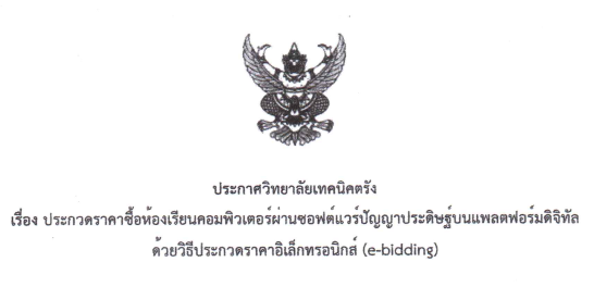 ข่าวจัดซื้อ/จัดจ้างประกาศวิทยาลัยเทคนิคตรัง เรื่อง ประกวดราคาซื้อห้องเรียนคอมพิวเตอร์ผ่านซอฟต์แวร์ปัญญาประดิษฐ์บนแพลตฟอร์มดิจิทัลด้วยวิธีประกวดราคาอิเล็กทรอนิกส์ (e-bidding) งานศูนย์ข้อมูลสารสนเทศ / 05/พ.ย./ 2025 เอกสารประกวดราคา คุณ