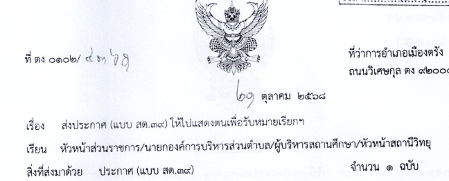 ข่าวสำหรับนักเรียน นักศึกษาส่งประกาศ (แบบ สด.39) ให้ไปแสดงตนเพื่อรับหมายเรียก งานศูนย์ข้อมูลสารสนเทศ / 11/พ.ย./ 2025