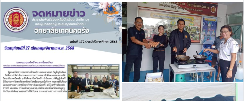 ข่าวประชาสัมพันธ์วิทยาลัยเทคนิคตรังทำโรงครัวประกอบอาหารพร้อมเดินทางมอบถุงยังชีพ และเยี่ยมบ้านคณะครู นักเรียน นักศึกษาครอบครัวที่ได้รับผล กระทบจากสถานการณ์น้ำท่วม งานศูนย์ข้อมูลสารสนเทศ / 27/พ.ย./ 2025