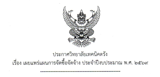 ข่าวจัดซื้อ/จัดจ้างประกาศวิทยาลัยเทคนิคตรัง เรื่องเผยแพร่แผนการจัดซื้อจัดจ้าง ประจำปีงบประมาณ พ.ศ.2569 งานศูนย์ข้อมูลสารสนเทศ / 03/พ.ย./ 2025