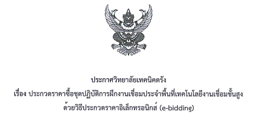 ข่าวจัดซื้อ/จัดจ้างประกาศวิทยาลัยเทคนิคตรัง เรื่อง ประกวดราคาซื้อชุดปฏิบัติการฝึกงานเชื่อมประจำพื้นที่เทคโนโลยีงานเชื่อมชั้นสูงด้วยวิธีประกวดราคาอิเล็กทรอนิกส์ (e-bidding) งานศูนย์ข้อมูลสารสนเทศ / 15/ม.ค./ 2026 เอกสารประกวดราคา คุณ